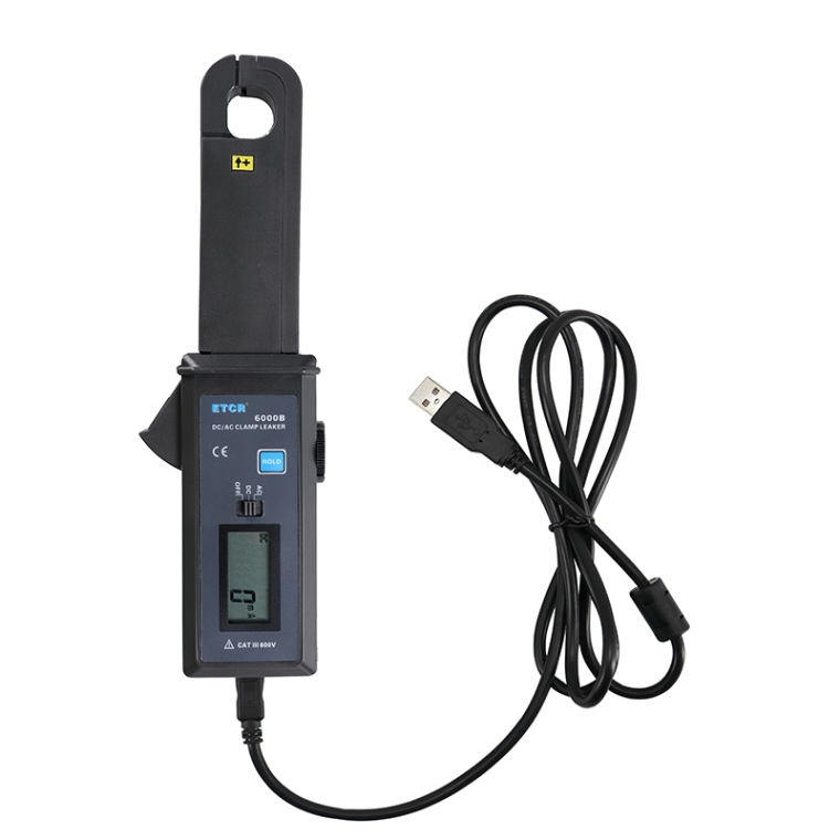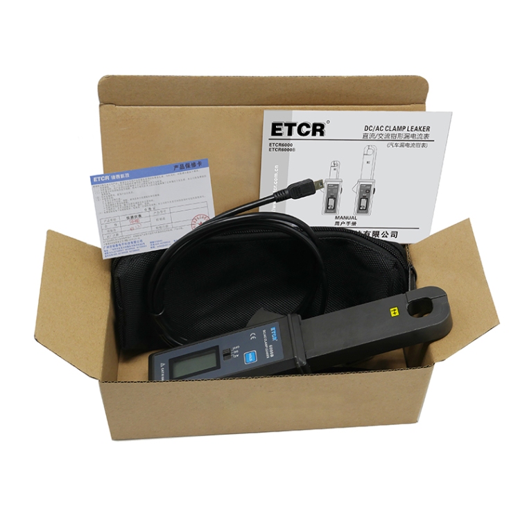 ETCR6000B交直流钳形漏电流表又名:直流漏电流钳表、汽车直流漏电流钳表、交直流钳形漏电流表。仪表具有数据保持、数据存储等功能,配备RS232接口、通讯线及软件,历史数据可以上传电脑,便于读取、保存、打印等。