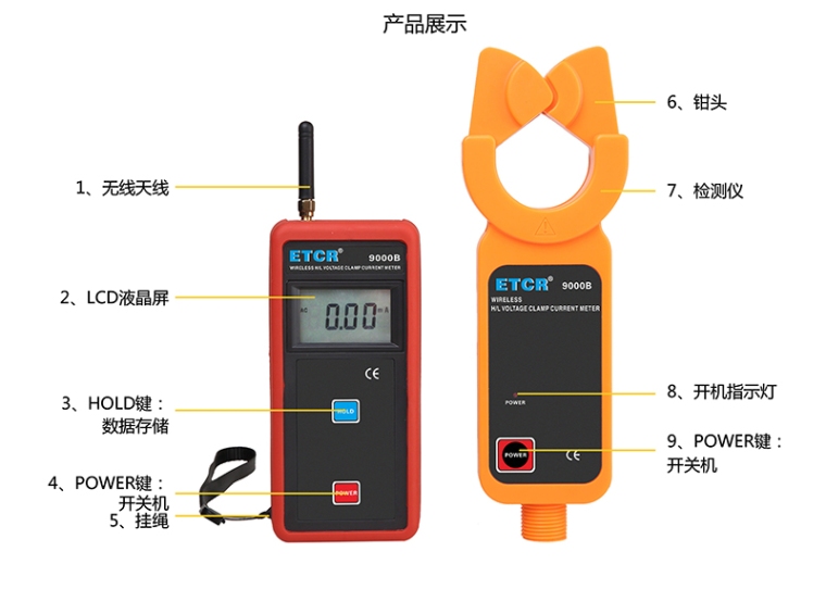ETCR9000系列高低压钳形电流表钳头与引导区一体化设计,确保了常年无间断测试的高精度、高可靠性、高稳定性。