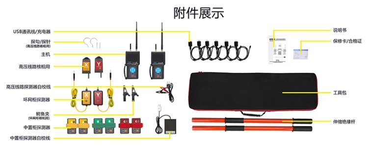 由主机、高压线路探测器、中置柜探测器、环网柜探测器、伸缩绝缘杆、监测软件、USB通讯线等组成。卫星远程核相时需使用2台主机,近距离核相时使用1台主机。主机采用3.5寸真彩液晶屏,可以同屏显示相位、频率、相序及核相结果;向量图指示、相位指示,清晰直观;具有“X信号正常、Y信号正常、同相、异相”等语音提示功能,使测试更简单轻松。
