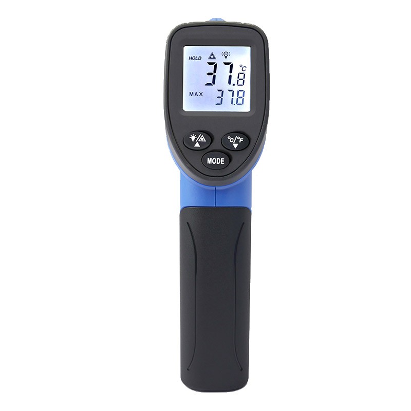 红外测温仪测量物体的表面温度,其光传感器辐射、反射并传输能量,然后能量由探头进行收集、聚焦,再由其它的电路将信息转化为读数显示在机上,本机配备的激光灯更有效对准被测物体及提高测量精度。