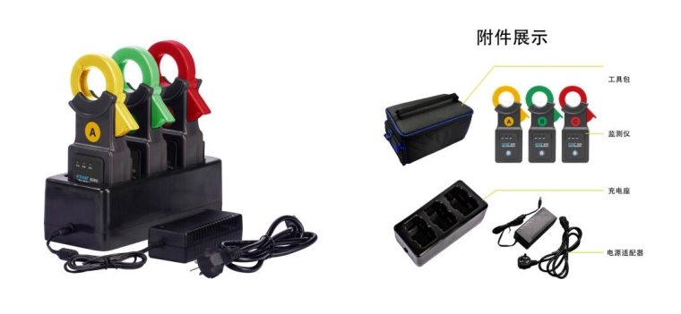 一、产品组成及用途 ETCR8080无线三相电流监测仪采用无线多连接通信技术,用于在线监测记录设备的三相电流及三相不平衡度,为用户提供三相电流负荷数据趋势图;多组监测仪也用于监测记录台区变压器及各支路三相负荷情况,为台区负荷转供切割提供技术支撑。用户可通过手机蓝牙在现场或通过4G通信在后台远程查看电流数据。 产品由3只检测仪、充电座、充电器、蓝牙APP及后台组成。 二、多连接通信 ETCR8080无线三相电流监测仪采用多连接通信技术,三个监测装置均内置蓝牙通信,其中A相监测装置内置4G通信,使用时将3个监测装置分别钳在负荷的A、B、C相上,通过监测装置采集负荷三相电流的实时数据,通过蓝牙汇总到其中具有4G通信功能的A相监测装置,A相监测装置将各相单位时间内的平均电流上传到后台服务器进行记录和分析。用户在现场可以通过手机蓝牙连接A相电流钳,将三相电流数据导入到手机,观察三相负荷电流数据及趋势,或通过后台远程查看监测仪记录的三相电流数据。