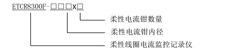 例如: ETCR8300F-200X1,表示1路、内径为φ200mm的柔性线圈电流监控记录仪。 ETCR8300F-300X3,表示3路、内径为φ300mm的柔性线圈电流监控记录仪。 注:柔性电流钳的尺寸按客户要求订制。 三.技术规格 1. 柔性电流钳尺寸
