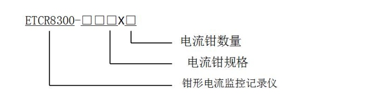 例如:ETCR8300-030X3,表示3路电流钳为030的钳形漏电流监控记录仪。