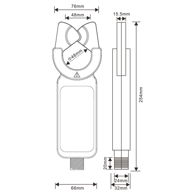 产品功能 高低压交流漏电流/电流、高次谐波电流、相位、电能、功率、功率因数等测试。 产品特点 1. 独特的自动插拔钳形结构,不必断开被测线路,携带方便特别适合现场在线测试。非接触测量,操作方便快速安荃可靠。 2. 采用坡莫合金铁芯、CT双层屏蔽技术,性能稳定精度高,抗干扰能力强,适用于复杂的干扰环境。 3. 电池仓可以放置7号碱性干电池(LR03 1.5V×4),为二次开发提供电源。 4. 绝缘杆接口:M24螺牙。 5. 绝缘强度:AC 3700V/rms(铁芯与外壳之间)。 6. 安荃等级:CATⅢ600V。配合绝缘杆可测试60KV以下线路。