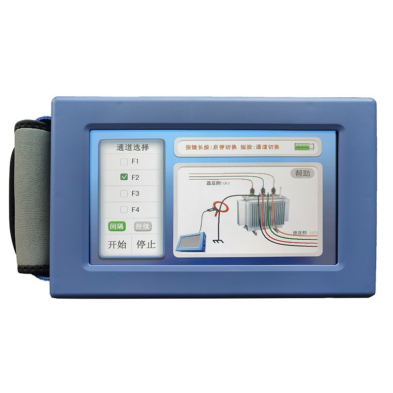 低压漏电查找仪,可在电网运行状态下查找漏电故障。耦合钳卡在漏电分支处或变压器接地线处,注入特征电流信号。故障电流经变压器接地线-变压器-线路-故障点-大地-变压器接地线,形成故障电流环流。故障点前后特征电流大小明显变化,从而实现漏电故障定位功能。