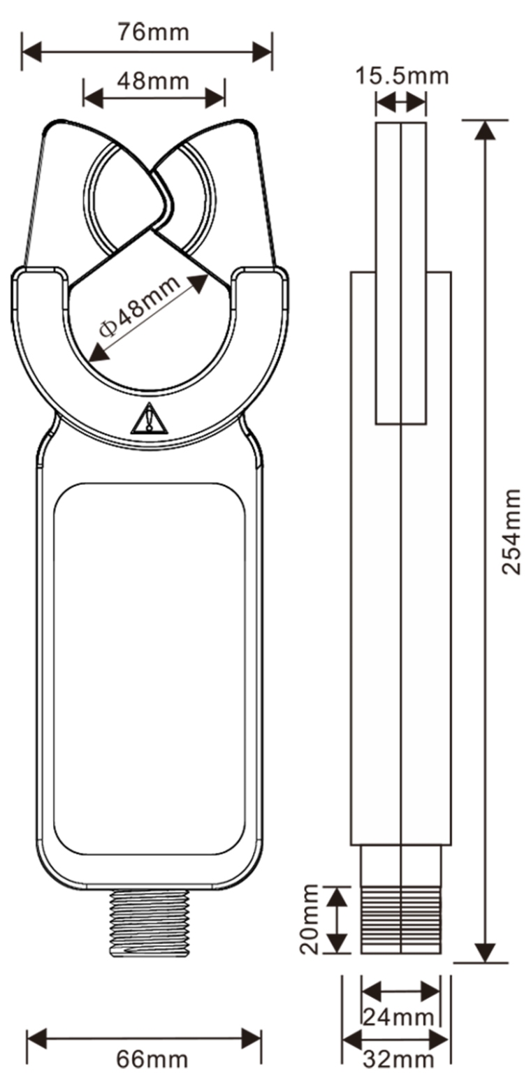 一. 简介 ETCR高压钳形漏电流/电流互感器适用于高精度的交流漏电流、高次谐波电流、相位、电能、功率、功率因数等检测。具有独特的自动插拔结构,使用方便,不必断开被测线路,非接触测量,安荃、快速,特别适合线路故障巡查仪使用。广泛适用于电力、通信、气象、铁路、油田、建筑、计量、科研教学单位、工矿企业等领域。 ETCR高压钳形漏电流/电流互感器其铁芯采用坡莫合金制造,采用双层屏蔽技术,外界磁场的影响极小,确保了常年无间断测量的高精度、高稳定性、高可靠性。互感器可输出电流和电压信号,互感器的量程、输出信号、输出接口等可按客户要求订制。 二. 产品特点 1、具有独特的自动插拔钳形结构,不需停电不需断开被测线路,携带方便特别适合现场在线测试。非接触测量,操作方便快速安荃可靠。 2、采用坡莫合金铁芯、双层屏蔽技术,性能稳定精度高,抗干扰能力强,适用于复杂的干扰环境。 3、输出线:2P白色接线端子,线长180mm。 4、电池仓可以放置4节1.5V AAA碱性干电池,为二次开发提供电源。 5、绝缘杆接口:M24 6、工作频率:45Hz~100KHz 7、工作温度:-15°C~50°C 8、绝缘强度:AC 3700V/rms(铁芯与外壳之间)。 9、安荃等级:CATⅢ600V。配合绝缘杆可测试60KV以下线路。 10、输出方式:感应电流输出 三. 型号规格参数