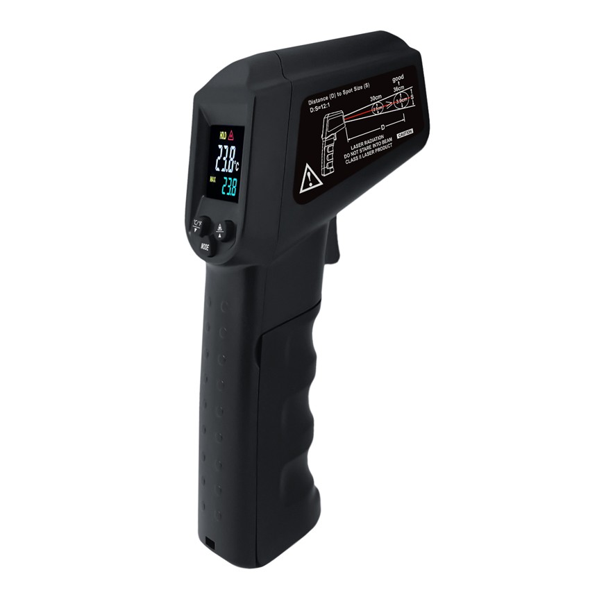 技术指标 | 测量温度范围 | -50℃~380℃ (-58℉~716℉) | 测温精度 | ≥100℃ ±2%,≤100℃ ±2℃ | 测量距离比率 | 12 : 1 | 发射率(可调节) | 0.1~1.0 | 响应时间和响应波长 | 500ms & 8-14μm | 重复性 | ±1% 或 ±1℃ | 解析度 | 0.1℃ 或 0.1℉ | 储存环境温度 | -20℃~50℃(-4℉~122℉) | 操作温度 | 0℃~50℃(32℉~122℉) | 彩屏显示 | √ | 所测温度最大值MAX 显示 | √ | 摄氏度℃/华氏度℉转换 | √ | 数据保持 | √ | 镭射目标显示选择功能 | √ | 低电量显示 | √ | 自动关机 | √ | 一般特征 | 供电 | 2个AAA电池 | 产品颜色 | 黑色+黑色,深灰色+黑色,蓝色+黑色 | 包装 | 每箱数量 | 按实际订单数量 | 外箱尺寸 | 按实际纸箱规格 | 外箱毛重 | 按实际货品毛重 |