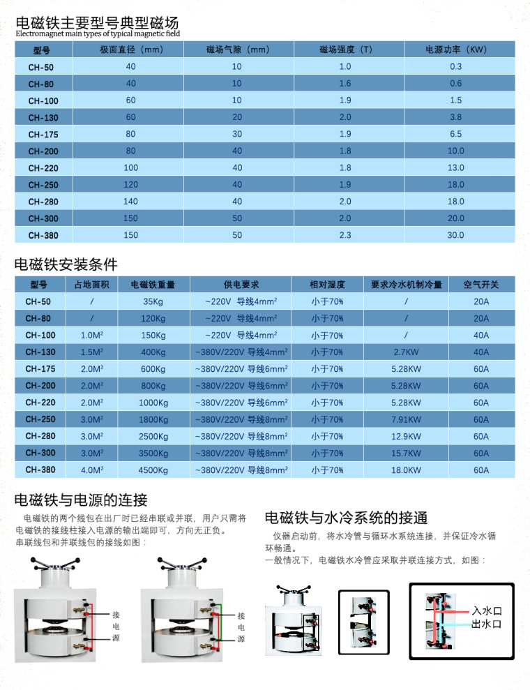 磁场气隙单向可调,双轭构形成闭合磁路,有较好的刚性,磁场方向垂直;直立座放,样品可置于下极头平面上,取放样品方便。适用于霍尔效应研究,磁电阻效应研究、磁滞伸缩研究、转矩磁强计、力法磁强计、磁化率测量装置、磁性材料测量装置以及对磁性器件的充磁和退磁等。