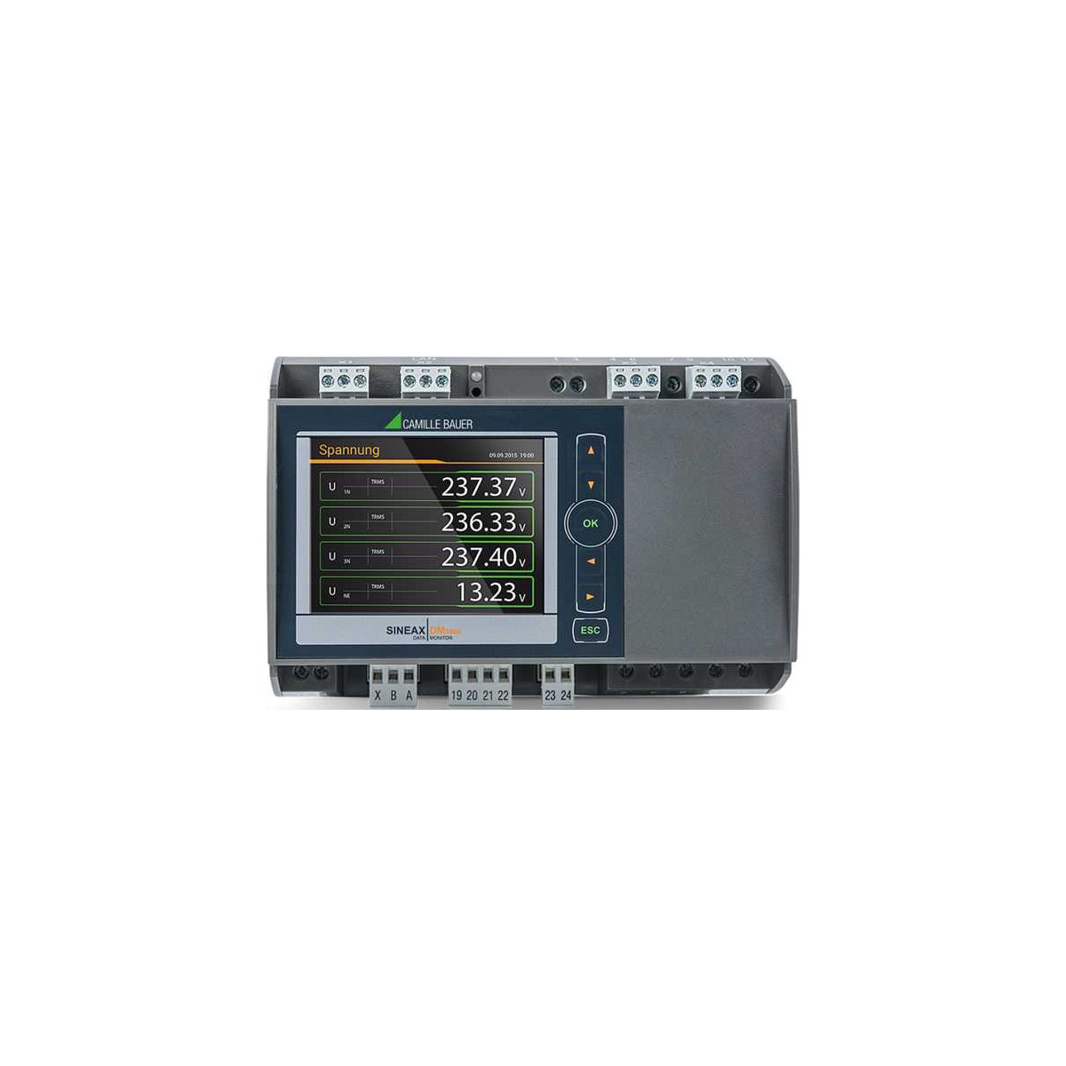 SINEAX DM5000是一个紧凑的设备,测量和监测在强电流电网。它提供了广泛的功能,甚至可以通过可选组件进行扩展。过程环境的连接可以通过通信接口、数字I/0s、模拟输出或继电器来实现。可选配的显示屏显示质量好,现场操作直观。该设备已被设计用于工业厂房、建筑自动化或能源分配。 在低压系统中,标称电压最高可达690v,计量等级CATIII可直接连接。通用测量系统允许在任何类型的电网中直接使用这些设备,从单相电源到四线不平衡负载系统。该设备可以通过web服务器或可选的TFT显示完全适应现场的要求配置和数据可视化都不需要特殊的软件。 灵活 任何类型电网的通用测量输入可自由选择的平均值和计量变量可配置的访问授权 可扩展 可组合设备版本(接口、I/0s、电源) 可选数据记录器(负载分布曲线、仪表读数、事件、干扰)作为标准对象集成到SMARTCOLLECT软件中 多功能 通过限制值及其逻辑链接来实现各种监控选项 通过显示器或网页进行中央报警功能 带有纯文本信息的警报列表,用于快速设备状态概述 直观 易于设备操作与特定语言的纯文本菜单指导 测量数据信息的局部排列,以便快速访问所需数据 维修和调试服务区 清晰 高分辨率,彩色TFT显示(选项),用于测量数据的高清晰显示持续可见的状态信息(警报,密码保护,数据记录) 网页设计与本地显示相同 技术参数