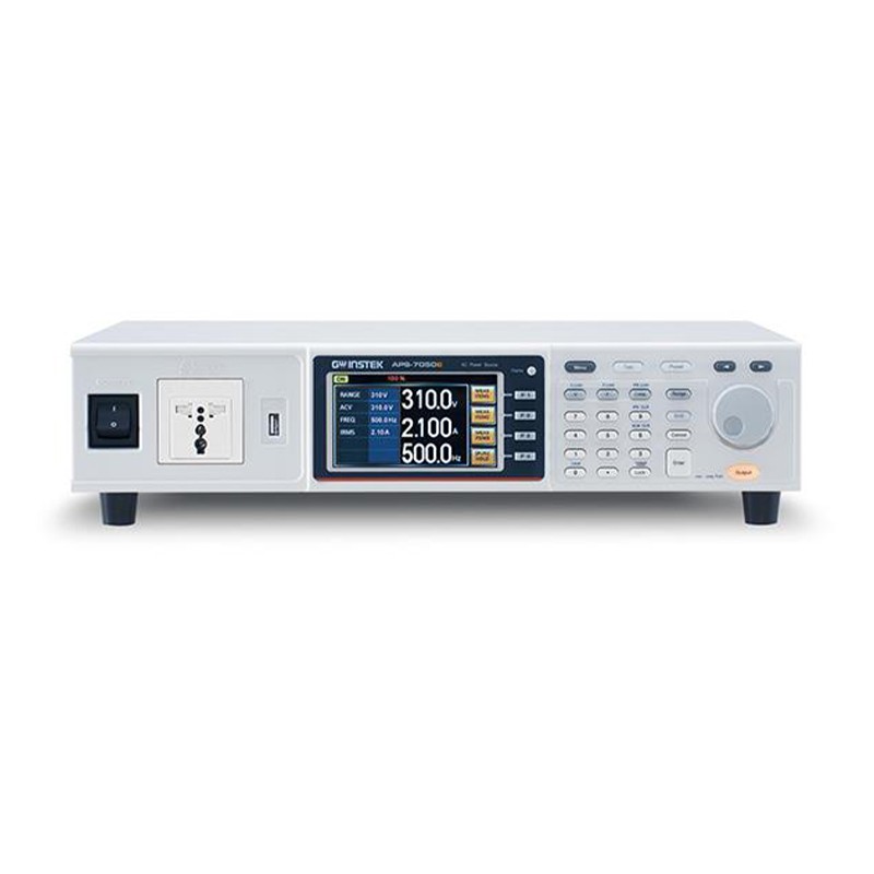 APS-7000E系列线性AC电源高2U,输出频率45~500Hz。APS-7050E最大额定输出500VA、310Vrms、4.2Arms;APS-7100E最大额定输出1000VA、310Vrms、8.4Arms。APS-7000E系列包含6种测量和测试功能(Vrms, Irms, F, Ipk, W, PF),具有类似AC功率计的用户界面。该系列通过增强小电流测量分辨率,尤其适合LED生产和备用模式功率损耗测试。为了满足消费电子中电源电压波动的测试标准,APS-7000E系列不仅提供了一个稳定的AC电源,其特殊的测试模式还可以处理特殊目的或异常的电压和频率。测试模式提供10组存储器,模拟功率中断、电压增强和压降。该系列可以生成电网功率瞬态波形,使用户能够判定在不利条件下的电子产品工作情况。 性能特点: 4.3'' TFT-LCD显示屏 输出能力: APS-7050E(500VA, 310Vrms, 4.2/2.1Arms) APS-7100E(1000VA, 310Vrms, 8.4/4.2Arms) 测量功能:电压, 电流, 功率, 电流(peak), 频率, 功率因数 10组测试模式,模拟功率瞬态输出 10组预设,用户可存储10组设置 OPP, OCP和OTP保护 可调的电压、频率和电流限制 通用进线电源