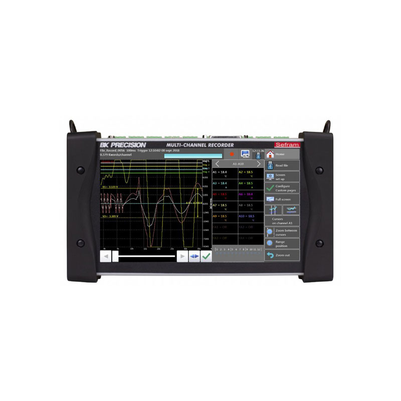 产品说明 DAS220-BAT 系列测量过程应用中常见的参数,包括电压、温度、电流、电阻、频率和脉冲。 它包括 10 个内置通用模拟通道,带有方便的螺钉输入端子,便于携带。 该记录仪由B&K Precision在法国的子公司Sefram开发,该公司专门设计和制造数据采集仪器、场强计等测试和测量仪器。 测量结果可以在 10 英寸彩色触摸屏上以图形和数字方式查看,并保存到内部固态存储器或外部 USB 内存中。 图标驱动的菜单使仪器易于导航。 免费的 DasLab Windows PC 软件允许用户远程控制和设定记录仪,传输记录结果和配置文件,并在 PC 上以图形或数字格式查看实时数据。 功能说明 特点和优点: 10英寸触摸屏 TFT 显示屏; 10 个内置通用模拟输入; 电池续航时间长达 15 小时(仅限 –BAT机型); 支持热电偶和 Pt100 / Pt1000 温度传感器的多功能温度测量; 测量电压至 ± 100V、电阻至 10 kOhm 和电流(可选购分流器); 16 位垂直分辨率; 32 GB 内部固态存储器; 12个逻辑输入/输出通道; 4 个用于脉冲计数、频率和 PWM 测量的时序逻辑输入通道; 免费的 DasLab 操作软件; WiFi 监控和控制(需要选购 USB WiFi 加密狗)。 应用: 使用热电偶和铂电阻温度传感器记录温度; 电压测量低至 ±0.5 mV 范围; 4 - 20 mA 电流回路测量; 频率、脉冲累计和脉冲旋转测量,可以用 RPM(每分钟转数)表示。 |