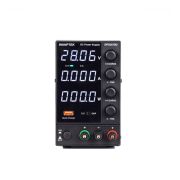 WPS305H是一款三窗口四位显示高精度程控型开关直流稳压电源,可同时显示电压、电流、功率。产品广泛用于手机维修、电脑维修、电池充电、学校教学和生产线的使用。其输出电压和输出电流均可使用编码电位器在0和标称值之间连续可调,可预显示设置值,方便使用调节。本机具有USB快充功能,支持多种快充协议。拥有**的OVP、OCP短路保护电路,产品亦提供了上位机通讯功能(选配),方便用户通过USB数据线与PC电脑及其它主控设备进行远程控制。电源的稳定度和纹波系数都非常好。其体积小、设计美观、操作便捷、可以满负荷长时间工作,深受广大用户喜爱。 产品特性 编码电位器设置电压电流,可预显示设置值。 OCP过载保护功能,短路停止输出。 具有Output输出通断功能。 USB快充功能,支持多种快充协议。 可选配USB通讯接口,PC控制软件。 体积小、重量轻、功率密度高。 恒压,恒流自动切换。 电压、电流、功率 三LED四位显示,精度高。 温控风扇散热、噪音低、寿命长。 应用领域 生产线测试。 手机,电脑,电器维修。 产品老化,电镀。 蓄电池充电。 实验室、科研教学。 其它一切需要直流稳压电源的场合。 型号参数 产品型号 | WPS305H | WPS3010H | WPS605H | WPS1203H | WPS1602H | 输出功率 | 150W | 300W | 300W | 360W | 320W | 输出电压 | 0~30V | 0~30V | 0~60V | 0~120V | 0~160V | 输出电流 | 0~5A | 0~10A | 0~5A | 0~3A | 0~2A | 辅助功能 | USB快充,OUT输出通断,USB上位机通讯(选配) | 保护方式 | OVP过压保护、OCP过流保护、过温保护、短路报警停止输出。 | 工作环境 | | 输入电源:AC 230V/115V±10%;50Hz/60Hz | 工作温度:0℃~40℃;相对湿度:<80%RH | 存储温度:-10℃~70℃;相对湿度:<70%RH | 稳压状态CV | | 电压稳定度:0.5%±3mV | 负载稳定度: 0.5%±3mV | 纹波电压:≤0.5% Vp-p | 0至额定电压连续可调 | 稳流状态CC | | 电流稳定度:0.5%±3mA | 负载稳定度: 0.5%±3mA | 纹波电流:≤0.5% Vp-p | 恢复时间:≤500μS | 温度系数:≤100ppm/℃ | 0至额定电流连续可调 | 表头显示 | | 0.4寸白光四位数码管三组显示 | 显示精度:0.5%±5个字 | 显示分辨率:电压0.01V, 电流0.001A | 产品特征 | | 产品尺寸:190mm(长) X 90mm(宽) X 145mm(高) | 包装尺寸:265(长) x 135(宽) x 195(高) mm | 裸机重量:1.15Kg | 含包装配件重量:1.5Kg | 8台/整件,整箱尺寸:550*275*405mm,整箱重量:12.5Kg | 随机附件 | | AC电源线 x 1,(可选:国标,美标,欧标,英标等) | 操作手册 x 1, | 输出测试线 x 1, | 机身颜色 | 黑色 |