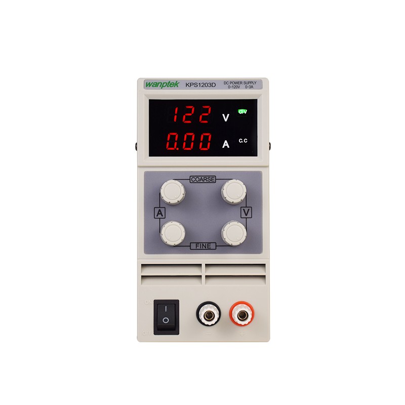 KPS1203D直流电源是单组输出、高精度双显示的开关型直流稳压电源。机器具备完整的操作保护功能、具有高效能、低纹波、稳定度高且体积轻小等特点。限流保护可以使KPS电源供应器和负载免受意外损害。KPS系列电源具备温控电路、智能散热噪音低。 产品特点 高效能、功率足 低纹波、体积小、重量轻 电压、电流双LED显示、精度高 稳压、限流、操作简单 双电压输入、选择方便 温控风扇散热、噪音低、寿命长 应用领域 生产线测试。 电器维修。 产品老化。 蓄电池充电。 实验室、科研教学。 其它一切需要直流稳压电源的场合。 技术参数