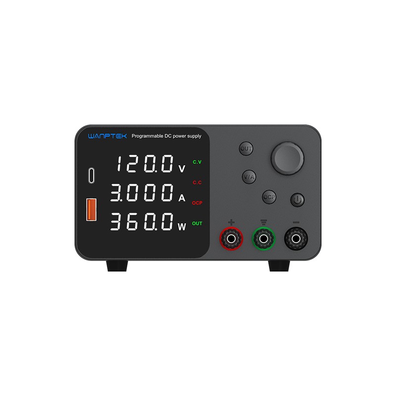 产品特点 USB-A/Type-C快速充电功能,支持多种快充协议。 OCP短路保护功能,短路停止输出。 体积小、重量轻、功率密度高。 单个编码器,切换调节电压电流。 电压、电流、功率 三LED显示,精度高。 温控风扇散热、噪音低、寿命长。 产品参数 产品型号 | TPS305 | TPS3010 | TPS605 | TPS1203 | TPS1602 | 输出功率 | 150W | 300W | 300W | 360W | 320W | 输出电压 | 0~30V | 0~30V | 0~60V | 0~120V | 0~160V | 输出电流 | 0~5A | 0~10A | 0~5A | 0~3A | 0~2A | 辅助功能 | USB-A/Type-C快速充电功能,支持多种快充协议 | 保护方式 | 限流保护/OCP短路报警停止输出、自恢复 | 工作环境 | | 输入电源:AC 230V/115V±10%;50Hz/60Hz | 工作温度:0℃~40℃;相对湿度:<80%RH | 存储温度:-10℃~70℃;相对湿度:<70%RH | 稳压状态CV | | 电压稳定度:0.1%±3mV | 负载稳定度: 0.2%±3mV | 纹波电压:≤0.5% Vp-p | 0至额定电压连续可调 | 稳流状态CC | | 电流稳定度:0.1%±3mA | 负载稳定度: 0.2%±3mA | 纹波电流:≤0.5% Vp-p | 恢复时间:≤500μS | 温度系数:≤100ppm/℃ | 0至额定电流连续可调 | 表头显示 | | 0.4寸白光四位数码管显示 | 显示精度:0.5%±3个字 | 显示分辨率:电压0.01V, 电流0.001A | 产品特征 | | 产品尺寸:长210mm X 宽145mm X 高80mm | 包装尺寸:300(长) x 195(宽) x 135(高) mm | 裸机重量:1.2Kg | 含包装配件重量:1.6Kg | 9台/整件,整箱尺寸:590*315*405mm,整箱重量:15Kg | 随机附件 | | AC电源线 x 1,(可选:国标,美标,欧标,英标等) | 操作手册 x 1, | 输出测试线 x 1, | 机身颜色 | 黑色、白色 可选 |