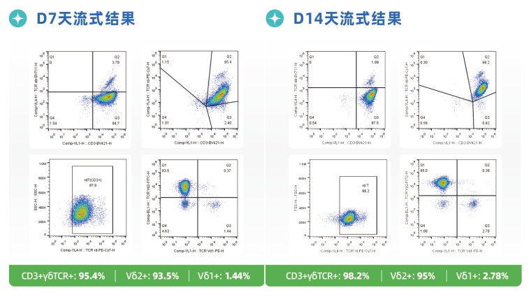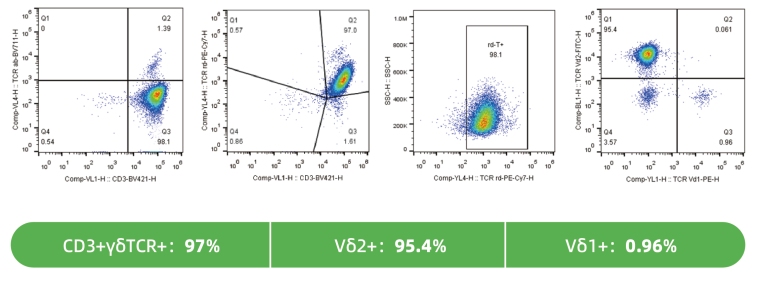 γδT细胞介绍 γδT细胞之所以受到广泛关注,核心在于其无需HLA抗原呈递的特性。这一特点使其在降低移植物抗宿主病风险方面表现突出,显著提升了疗法的整体安全性,为多种疾病的治疗提供了更广阔的应用空间。 与传统的TCR-based T细胞疗法相比,γδT细胞能以MHC非依赖的方式识别和靶向多种肿瘤抗原,尤其在实体瘤治疗中展现出独特优势。 此外,将γδT细胞与CAR-T技术结合,可进一步增强其肿瘤靶向能力,为癌症免疫治疗开辟了更具前景的路径。 华辰生物 γδT细胞激活扩扩增试剂盒介绍 在免疫细胞治疗领域,γδT细胞因无需HLA抗原呈递的特性,正成为下一代免疫细胞疗法的重要研究方向。 华辰生物(HUACHEN Bio)作为细胞治疗领域解决方案的领军企业,开发了两种基于novaT-36培养基和pureSep-γδT纯化试剂的临床级γδT细胞高效激活扩增先进方法,为该领域的临床应用提供了创新性的全流程解决方案。 hyperClone Human γδT Activation/Expansion Cocktail Kit **代γδT细胞试剂盒:唑来膦酸激活法 无需预先纯化,激活过程加入唑来膦酸,扩增Vδ2细胞和部分Vδ1细胞,总细胞数可扩增100-300倍,可以扩大培养体积实现细胞数量放大。D14天细胞纯度超过90%,杀伤活性高。**代试剂盒适用于新鲜或冻存的细胞。 γδT细胞培养照片