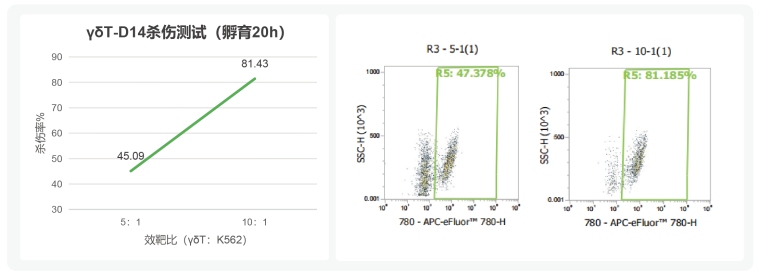 γδT细胞培养至D14与K562共孵育20h进行肿瘤杀伤试验