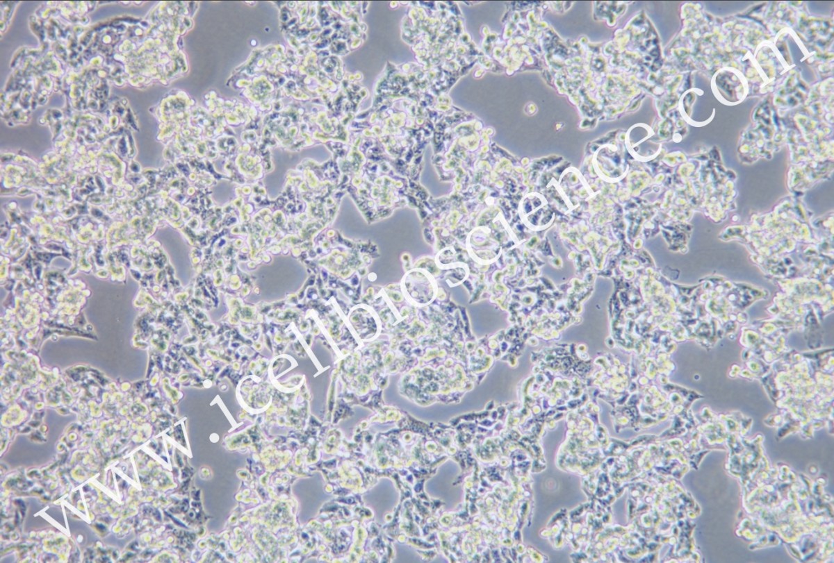 细胞介绍 该细胞系来自15岁男性白人的组织。形态为上皮形,模式染色体数为55,在免疫抑制小鼠中不致瘤。 细胞特性 1) 来源:肝细胞癌 2) 形态:上皮细胞样,贴壁生长 3) 含量:>1x10^6 细胞数 4) 规格:T25瓶或者1mL冻存管包装 5) 用途:仅供科研使用。 一.培养基及培养冻存条件准备: 1) 准备DMEM(推荐iCell-0001)培养基;优质胎牛血清,10%;双抗,1%。 2) 培养条件: 气相:空气,95%;二氧化碳,5%。 温度:37摄氏度,培养箱湿度为70%-80%。 培养注意事项:1. hepg2细胞复苏或传代后会有少部分的细胞贴壁和部分悬浮的细胞,复苏两天后细胞会从贴壁细胞向外开始生长,有时细胞再生长过程中,细胞会再贴壁细胞的上方生长,形成不同的细胞层,这种情况会有发生。 在细胞复苏的一周内,培养瓶中 通常会有悬浮的活的细胞团,在换液过程中不要丢弃在这些活的悬浮细胞,可以通过离心(125×g)回收细胞,重新打回到培养瓶中,分离或者丢弃漂浮的活细胞会使细胞数量变少,引起细胞的停滞生长或细胞死亡。 2.培养条件的细微变化,尤其是pH和培养基中血清的质量,可能会影响细胞的生长状况,在细胞的生长过程中会有细胞内的液泡出现,特别在细胞快要融合是会出现这种情况。培养细胞时使用未被灭活的高质量、低内毒素的胎牛血清,可以使细胞更好的贴壁和形成单层细胞。 3. 细胞在生长过程中可以通过将血清浓度提到到20%来改善细胞生长缓慢的情况。(参考atcc 有关该细胞的描述) 3) 冻存液:90%血清,10%DMSO,现用现配。 该细胞为轻微贴壁和少量悬浮培养细胞,传代可以参考以下方法: 1. 收集:将培养瓶中的悬浮的细胞收集到离心管中。用不含钙、镁离子的PBS润洗细胞1-2次。由于细胞贴壁不牢PBS润洗后细胞会脱落所以PBS也要回收到离心管中。 2. 加入0.25%(w / v)胰蛋白酶-0.53 mM EDTA于培养瓶中(T25瓶1-2mL,T75瓶2-3mL)置于37℃培养箱中消化1-2分钟(难消化的细胞可以适当延长消化时间),然后在显微镜下观察细胞消化情况,若细胞大部分变圆并脱落迅速拿回操作台,轻敲几下培养瓶后加入3-4ml含10%FBS的培养基来终止消化。 3. 将收集到的悬浮细胞、pbs清洗液中的细胞和消化下来的贴壁细胞以1000rpml离心5min,弃去上清,补加1-2mL培养液后重悬混匀后将细胞悬液按1:2的比例分到新T25瓶中,添加6-8ml按照说明书要求配置的新的完全培养基以保持细胞的生长活力,后续传代根据实际情况按1:2~1:5的比例进行。 3) 细胞冻存: 收到细胞后建议在培养前3代时冻存一批细胞种子以备后续实验使用。 |