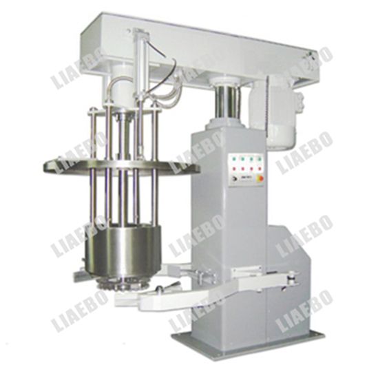 液压升降篮式研磨机集分散与研磨一体,适用于中低粘度流体的湿法研磨,属于间歇式工业生产设备,研磨篮结构设计合理,设备清洗换色换品种方便;升降结构采用液压油缸作为执行器,升降稳定,选用集成式油箱,环保无泄漏;该机是多品种、多颜色产品的理想研磨设备。 产品特点 研磨效率高,产品细度好 强大的动能驱动氧化锆拨杆使腔体内的研磨介质产生不规则运动,相互之间高速碰撞、摩擦,使粉料粒径快速变小;研磨细度普遍可达5um左右,部分产品可达亚微米甚至纳米级。 操作方便、安全 设备通过油缸作为升降执行器,通过油泵控制研磨装置上升、停止、下降,操作简单、稳定;带有不同形式的抱夹装置,可以快速将研磨桶固定,防止桶在工作中发生位移造成安全事故。 温升小,产品稳定 所配料桶带双层冷却夹套,在设备运行时通水冷却,起到很好的冷却效果,常规温升小于10o;可以定制研磨腔体带冷却。 非标性强 可非标定制防爆型;研磨腔体可定制氧化锆材质;可定制真空型设备;设备材质可定制SS316L不锈钢。 液压升降篮式研磨机电机运转带动拨杆和底部分散盘高速旋转,使分散盘上部及篮腔内部形成真空,浆料被吸入篮式研磨腔内。拨杆驱动腔内的研磨介质产生向各个方向的力,物料中的颗粒受到介质不断地碰撞及摩擦,粒径变小,粒径范围变窄;分散盘的高速运转,产生涡流将腔内物料抽吸出来,再循环至进料,具有非常显著的分散混合效果,通过液压泵工作驱动液压柱塞升降,带动整个传动机构和研磨装置升降。 适用于小批量生产(换色容易),预分散和研磨可在一个研磨篮体内完成。主轴运转平稳,噪音小,附属设备少,清洗方便,更换研磨介质容易。 产品详情
