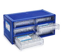Vial convenience pack, screw top, clear vials with write-on spot, blue caps, certified, PTFE/silicone/PTFE septa, 500/pk