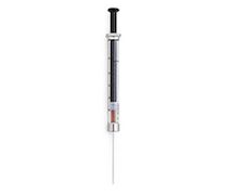 色谱柱进样针与针头->手动进样针和针头->GC 手动进样针 手动进样针,500 µL PTFE 可更换式针头,斜面针尖. 适用于 50–400 µL 进样。PTFE 头推杆适用于气相样品和腐蚀性溶剂。带斜面针尖的通用针头。从安瓿或样品瓶中转移液体以及手动气相色谱进样的理想选择。精密型 25 AWG 针头可减少样品的交叉污染。替换 PTFE 头推杆见部件号 5190-1564。替换针头见部件号 5190-1496。