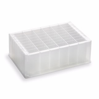 微孔板->标准微孔板和定制微孔板->储存和分析微孔板 存储/反应微孔板,48 孔,聚丙烯,5 mL/矩形孔,金字塔形底部,44 mm 高,经辐射灭菌,25/包. 推荐的密封垫/盖子 202497-100