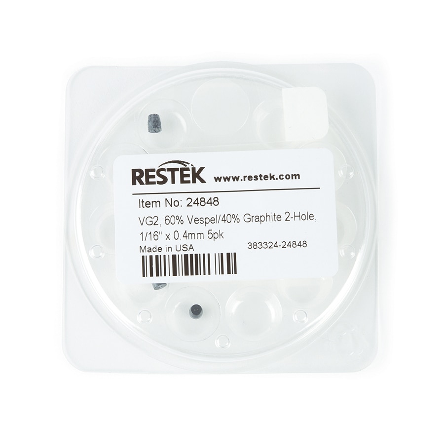 毛细柱卡套,双孔,Vespel/石墨,用于1/16英寸压缩型接头,VG2,60%Vespel/40%石墨,1/16英寸x 0.4 mm ID,5个/包
