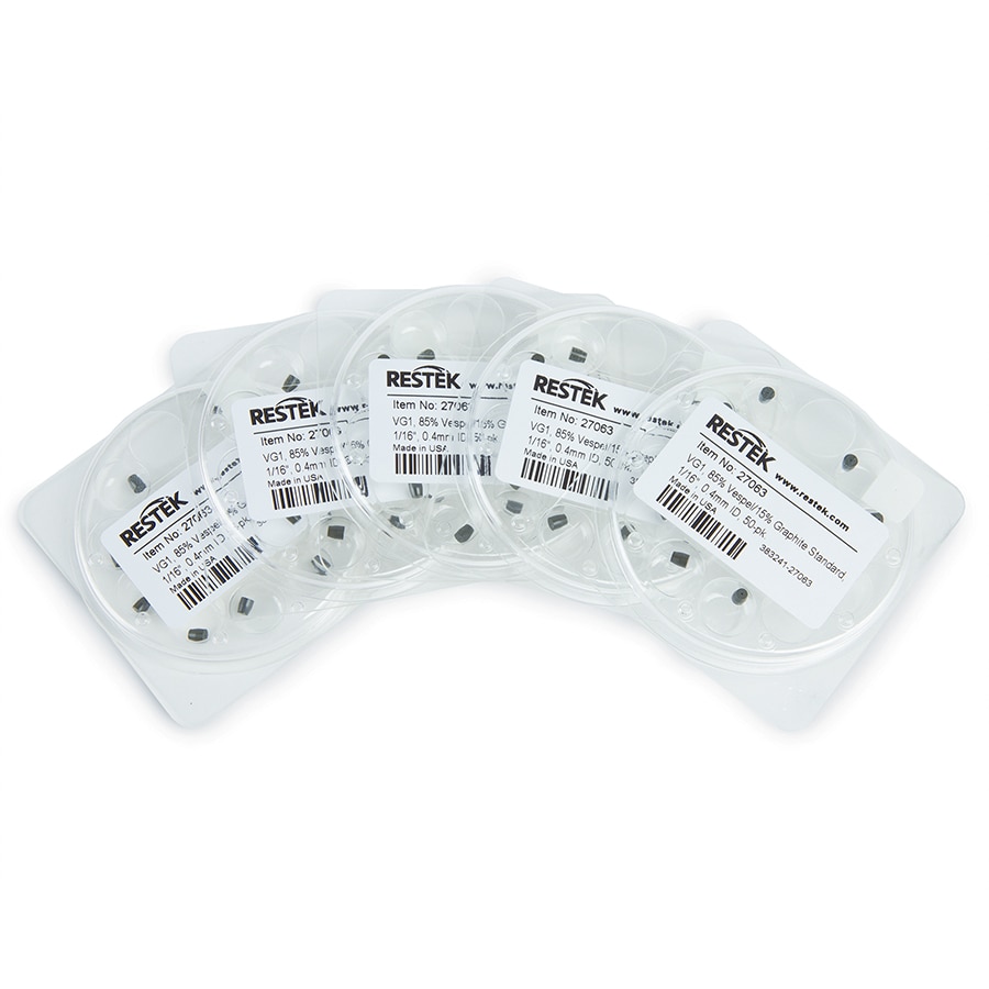 毛细柱卡套,Vespel/石墨,标准型,用于1/16英寸压缩型接头,VG1,85%Vespel/15%石墨,1/16英寸x 0.4 mm ID,50个/包