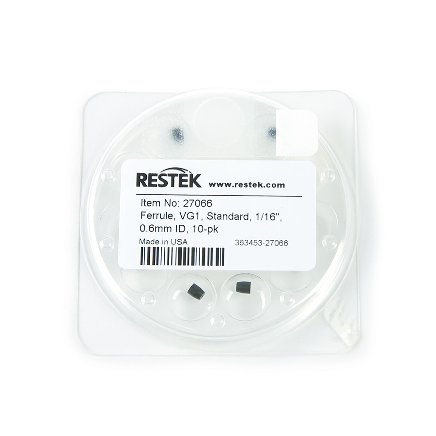 毛细柱卡套,Vespel/石墨,标准型,用于1/16英寸压缩型接头,VG1,85%Vespel/15%石墨,1/16英寸x 0.6 mm ID,10个/包