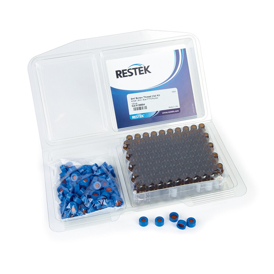 2.0 mL螺纹小瓶便利套装,聚四氟乙烯/丁基橡胶隔垫,棕色,带刻度标记点,带蓝色盖,9 mm,1000个/包。 |