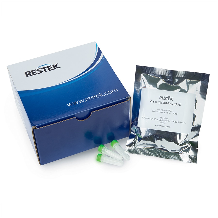 QuEChERS methods are fast, easy, and cost-effective, and Restek Q-sep products make QuEChERS procedures even simpler. All extraction salts, sorbents, and sample tubes are included—no specialized equipment or glassware is required. Prepare samples more efficiently with a complete line of QuEChERS supplies from Restek.