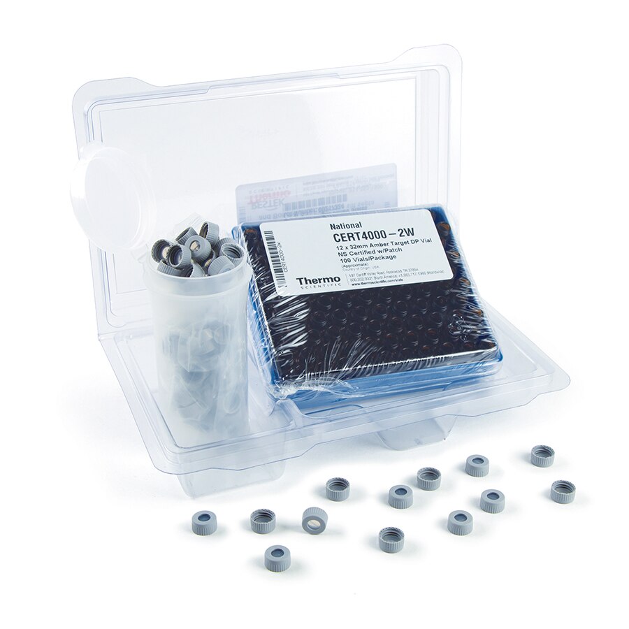 认证自动进样器螺口小瓶套装,粘合PTFE/硅胶预切隔垫,棕色,带书写区,带盖,未组装,2.0 mL,100个/包