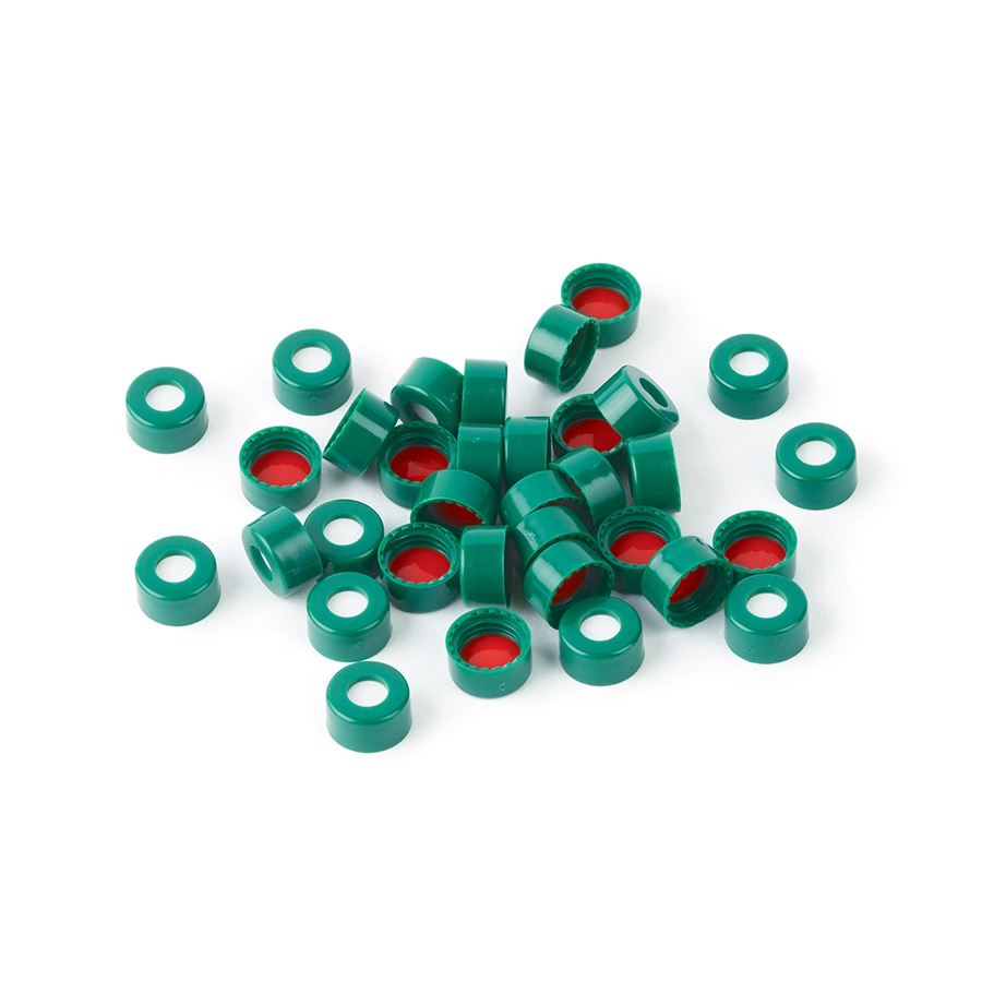 短螺口盖,聚丙烯,螺纹,PTFE/硅胶隔垫,绿色,预装配,2.0 mL,9 mm,100个装