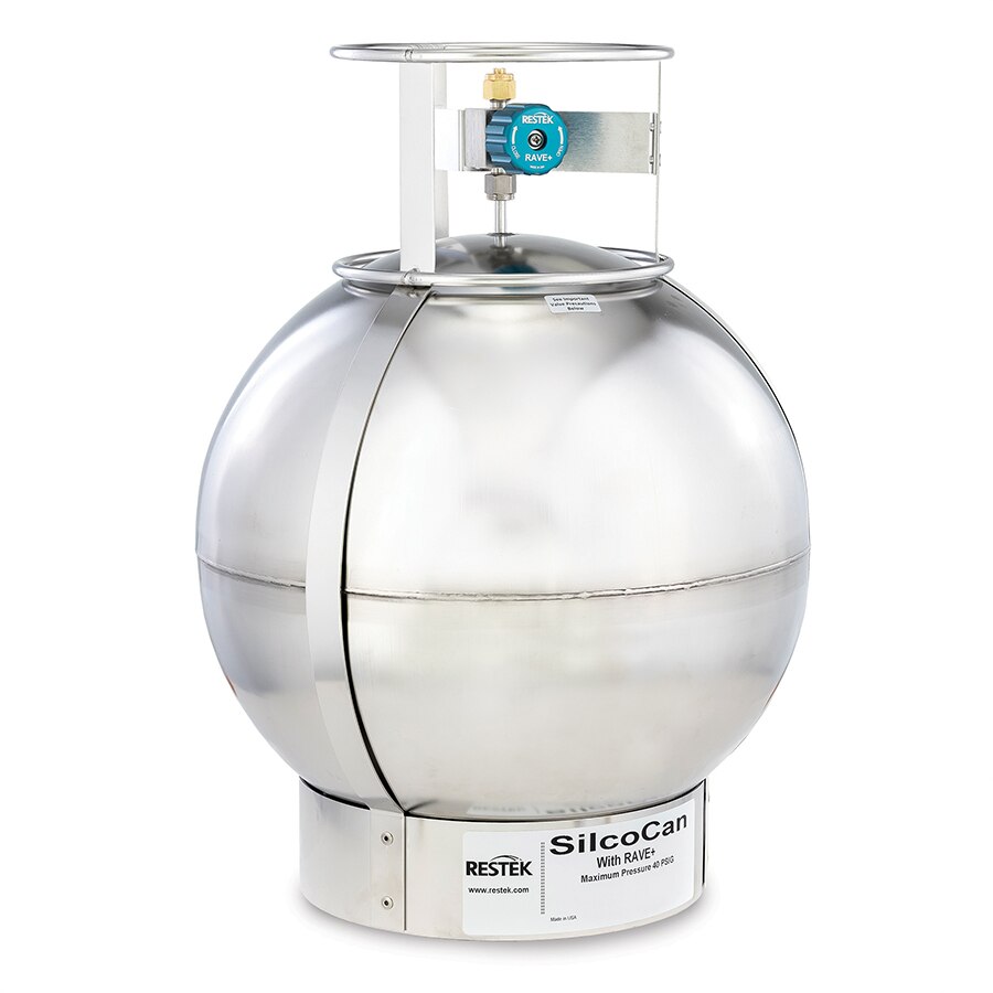 For ultimate inertness, SilcoCan air sampling canisters feature our unique Siltek treatment technology. Even highly active components at low parts-per-billion concentrations can be readily sampled and stored without loss. The valve is a high-quality, metal-to-metal seal, 2/3-turn valve with metal diaphragms to prevent sample adsorption for more accurate results. Both stainless-steel and Siltek-treated valves are available in both the 2-port and 3-port configurations. Each canister is slightly pressurized with contaminant-free nitrogen prior to shipment. Whether you are sampling for TO-14A, TO-15, TO-15A, or reactive sulfur compounds, SilcoCan canisters are your best choice for inertness. In Tedlar bags, the stability of low-level (100 ppbv) sulfur volatile organic compounds (VOCs) is poor, even within 24 hours of sampling. Sulfur compounds react with the metal surface in electropolished canisters, so they are unsuitable for collecting and storing low-level sulfur VOCs. SilcoCan air sampling canisters, which feature a Siltek-treated surface, offer excellent storage stability for sulfur VOCs at very low levels (5–20 ppbv), under dry or humid conditions. The versatility of the SilcoCan canister makes it an excellent choice for collecting and storing TO-14A, TO-15, or TO-15A compounds. Dimensions/Weights of Air Canisters