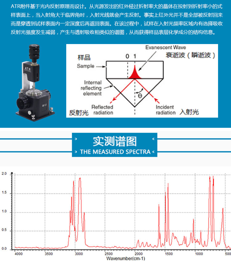 ENERGY 30傅立叶变换红外光谱仪是天津恒创立达科技发展公司精心自主研发的产品,它具有安装便捷、使用简单、维护方便等特点,是材料科学、生物医药、石油化工、食品安全等行业不可或缺的光谱分析仪器,同时,它也是高校、研究所等机构相关专业必备的实验室分析仪器。自上市以来占据国内市场主导地位,并赢得了广大用户的支持与信赖。 实验原理 利用干涉仪干涉调频的工作原理,把光源发出的光经迈克尔逊干涉仪变成干涉光,再让干涉光照射样品,接收器接收到带有样品信息的干涉光,再由计算机软件经傅立叶变换即可获得样品的光谱图。