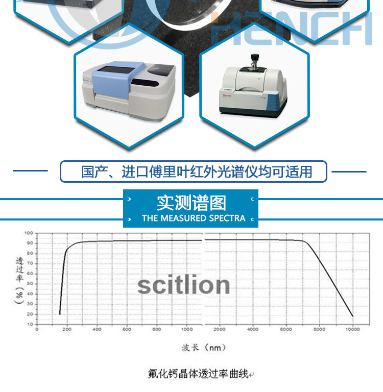产品特点: 1.符红外光谱用于分析化学中的光谱区段是中红外区,即波7800~350cm-1的范围 2.氟化钙(CaF2)在中红外区没有吸收,用它来压片测定不会对样品信号产生干扰. 3.氟化钙(CaF2)晶体具有透光范围宽(在0.13μm~10μm波长范围内透光性 能良好)应力双折射低(在200nm以上无明显本征双折射),折射率均匀高,机械性能稳 定,不潮解,抗辐照损伤能力强等优点,是制作各类光学窗口、棱镜及透镜等 光学元件的理想材料. 4.目前可以获得的CaF2晶体的最 大直径为375mm。 5.具有较高的透过率和较宽的透射波段,纯度可达99.99%,广泛用于傅里叶变 换红外光谱仪、红外分光光度计等。 产品规格: 圆形:10×2、13×2、15×3、20×3、25×4、32×3、30×3、32×3、 35×5、40×5mm 可根据客户要求定制不同规格尺寸 产品参数: 折射率(0.13μm~10μm):1.6921~1.3161 熔点/℃:1360 解理面 :(111) 热导率/Wm-1K-1:9.71 克氏硬度/kg*mm-2:158.3 弹性系数:C11=164;C12=53;C44=33.7 溶解度/ g/100gH2O:0.0017@20℃