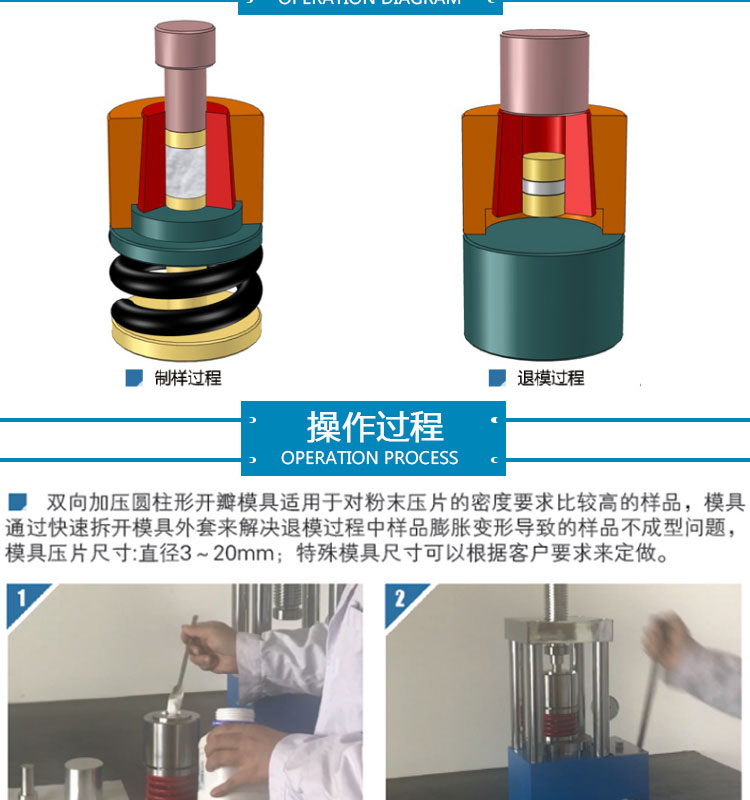 户需求定制不同尺寸的压片模具。