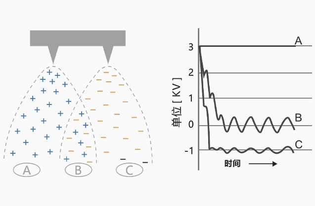 直流型离子风机采用正负放电针分离设计,正电针专释正离子,负电针专释负离子,性能优势显著:离子平衡度更精准(可达±15V内),静电消除速度更快,适合高精度电子制造、半导体等场景。相比交流型离子风机,其中和效率更高,但需注意环境洁净度与定期维护(如放电针清洁),以保障长期稳定性。