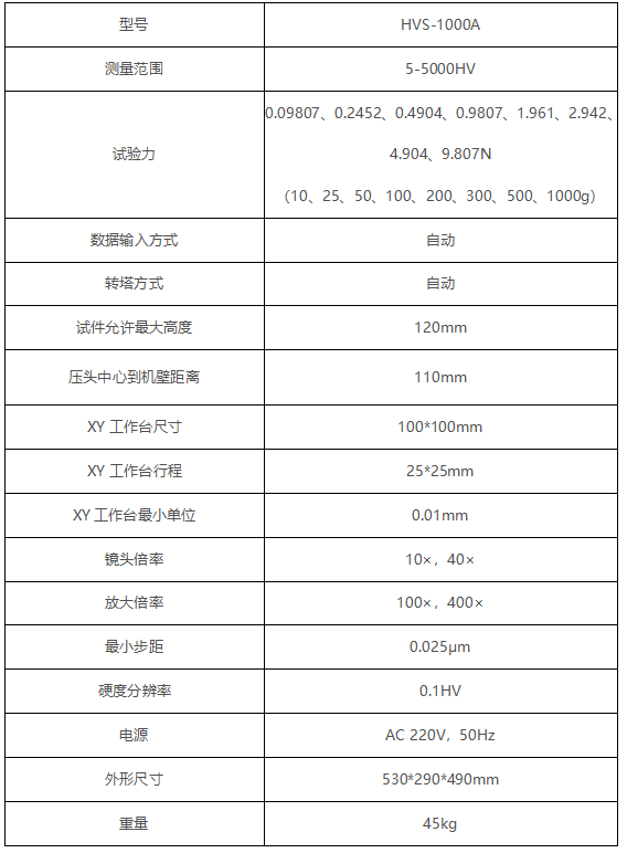 1、机身使用优质铸铁一次浇铸成型,配合以汽车烤漆处理工艺,外形圆润美观; 2、涡轮蜗杆升降系统较好地提高测试稳定性以及测试精度,测试完成后无需再次对焦; 3、配置了自动转塔功能,高清测量和观察-双物镜组合,结合内置长度编码器的高清测微目镜,实现了压痕对角线的一键测量,较好地减少了人为操作干扰与读数误差; 4、便捷数控系统,可自动进行全硬度标尺的单位转换; 5、可设置硬度值的最大值和最小值,当测试值超过设定范围时,发出蜂鸣音; 6、具有软件硬度值修正功能,可以在一定范围内直接对硬度值进行修正; 7、具有数据库功能,对试验数据自动进行分组保存,每组可保存10个数据,可以保存2000个以上数据; 8、具有硬度值曲线显示功能,直观显示硬度值的变化; 9、可选配CCD图像处理系统,另可选配努氏压头,进行努氏硬度测量; 10、配置无线蓝牙打印机,并可通过RS232、USB(可选装)接口输出数据; 11、精度符合GB/T4340.2、ISO6507-2 和美国ASTM E384标准。 应用范围: 1、 黑色金属、有色金属、IC薄片,表面涂层、层压金属; 2、 玻璃、陶瓷、玛瑙、宝石、薄塑料等; 3、 碳化层和淬火层的深度及梯度的硬度测试。 4、适用于平行平面和微小零件及超薄零件的精密显微维氏硬度测量。 技术参数