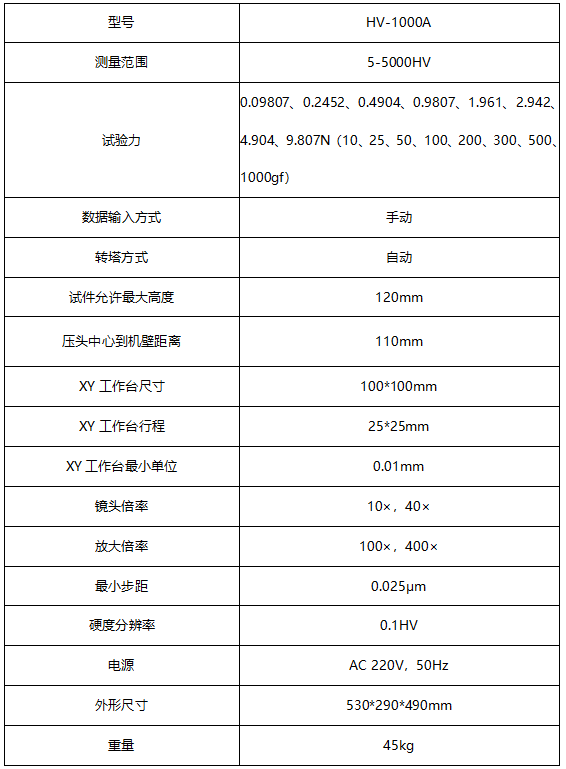 1、机身使用优质铸铁一次浇铸成型,配合以汽车烤漆处理工艺,外形圆润美观; 2、涡轮蜗杆升降系统较好地提高测试稳定性以及测试精度,测试完成后无需再次对焦; 3、便捷数控系统,可自动进行全硬度标尺的单位转换; 4、可设置硬度值的最大值和最小值,当测试值超过设定范围时,发出蜂鸣音; 5、具有软件硬度值修正功能,可以在一定范围内直接对硬度值进行修正; 6、具有数据库功能,对试验数据自动进行分组保存,每组可保存10个数据,可以保存2000个以上数据; 7、具有硬度值曲线显示功能,直观显示硬度值的变化; 8、可选配CCD图像处理系统,另可选配努氏压头,进行努氏硬度测量; 9、配置无线蓝牙打印机,并可通过RS232、USB(可选装)接口输出数据; 10、精度符合GB/T4340.2、ISO6507-2 和美国ASTM E384标准。 应用范围: 1、黑色金属、有色金属、IC薄片,表面涂层、层压金属; 2、玻璃、陶瓷、玛瑙、宝石、薄塑料等; 3、碳化层和淬火层的深度及梯度的硬度测试。 4、适用于平行平面和微小零件及超薄零件的精密显微维氏硬度测量。 技术参数: