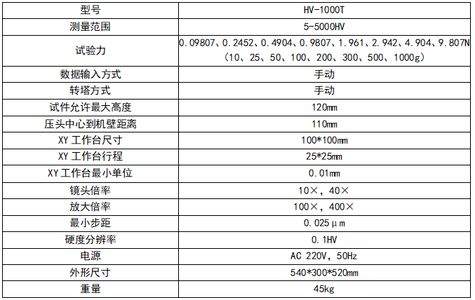 1、机身使用优质铸铁一次浇铸成型,配合以汽车烤漆处理工艺,外形圆润美观; 2、涡轮蜗杆升降系统较好地提高测试稳定性以及测试精度,测试完成后无需再次对焦; 3、配置了自动转塔功能,高清测量和观察-双物镜组合,较好地减少了人为操作干扰与读数误差; 4、便捷数控系统,可自动进行全硬度标尺的单位转换; 5、可设置硬度值的最大值和最小值,当测试值超过设定范围时,发出蜂鸣音; 6、具有软件硬度值修正功能,可以在一定范围内直接对硬度值进行修正; 7、具有数据库功能,对试验数据自动进行分组保存,每组可保存10个数据,可以保存2000个以上数据; 8、具有硬度值曲线显示功能,直观显示硬度值的变化; 9、可选配CCD图像处理系统,另可选配努氏压头,进行努氏硬度测量; 10、配置无线蓝牙打印机,并可通过RS232、USB(可选装)接口输出数据; 11、精度符合GB/T4340.2、ISO6507-2 和美国ASTM E384标准。 应用范围: 1、 黑色金属、有色金属、IC薄片,表面涂层、层压金属; 2、 玻璃、陶瓷、玛瑙、宝石、薄塑料等; 3、 碳化层和淬火层的深度及梯度的硬度测试。 4、适用于平行平面和微小零件及超薄零件的精密显微维氏硬度测量。 技术参数: