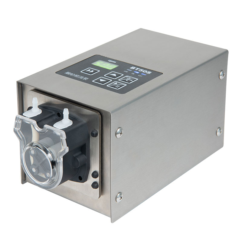 BT50S型蠕动泵可安装多种泵头:JY10、JY15、WX10,能提供0.0025-55(mL/min)的流量范围。 转速可手动调节,也可通过外控接口进行控制, 可与分装控制器配合,实现灌装功能。具有掉电记忆功能, 可与本公司无线遥控器配合使用,实现远程无线操控。 基本参数 转速范围:0.1-50rpm转速调节方式:独立按键调节 驱动电机:42步进电机 适用电源:宽泛电压AC90-265V,50Hz/60Hz 工作环境:环境温度0~40℃、相对湿度<80% 转速分辨率:0.1rpm 消耗功率:<12W 显示功能:3位LED显示当前转速 外型尺寸(长×宽×高):177×105×104mm 驱动器重量:1.6kg BT50S蠕动泵主要特点 ▲可提供0.0025-55mL/min的流量范围。 ▲转速可独立按键调节,也可通过外控接口进行控制。 ▲可与分装控制器配合,实现灌装功能。 ▲可与本公司无线遥控器配合使用,实现远程无线操控 ▲本机具有掉电记忆功能,全速键可进行排空和充液。 ▲外形美观,体积小,安装方便,操作简单直观。 BT50S蠕动泵流量参数 JY15泵头:适用16#25#软管,单通道参考流量范围0.056-55mL/min,支持1通道 JY10泵头:适用壁厚≤1mm、内径≤3.17mm软管,单通道参考流量范围0.0025-25mL/min,支持1通道 WX10泵头:适用壁厚≤1mm、内径≤3.17mm软管,单通道参考流量范围0.015-20mL/min,支持1通道 BT50S蠕动泵典型应用 适用于常规流体输送、制药行业、精细化工、水处理、环保工程、食品饮料生产剂量添加剂、工艺发酵系统中补酸补碱消泡、科学实验等诸多通用领域。 |