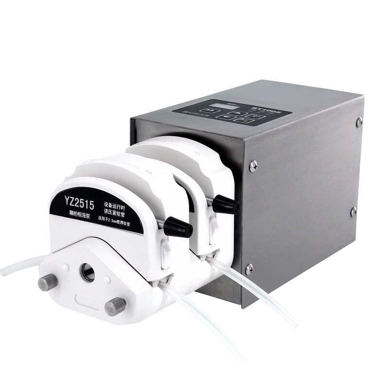 可安装多种泵头:YZ1515、YZ2515、DG(6)1-12、DG(10)1-12,能提供0.002-570(mL/min)的流量范围。 3位LED数码管显示当前转速; 正转,反转,外控用3个指示灯指示; 实体按键调节转速、方向、启/停; 设有全速键,可实现快速填充或排空; 支持0-10kHz、0-5V、0-10V、4-20Ma等外部信号控制; 可通过RS485与PC机进行通讯。 基本参数 转速范围:0.1~150rpm显示方式:3位数码管 调节方式:实体按键调节或外控调节 适用电源:宽泛电压AC90-265V,50Hz/60Hz 工作环境:温度0~40℃、相对湿度<80%不结露 驱动器重量:2.1kg(不含泵头) 转速分辨率:转速<100rpm,0.1rpm;转速>100,1rpm 外控控制:可选择0-10kHz、0-5V、0-10V、4-20mA;外控模块;控制启停,方向,转速 通讯功能:选配RS485通讯模块;可进行RS485通讯控制(标准Modbus规约) 消耗功率:<30W 外型尺寸(长×宽×高):191×105×138(mm) 防护等级:IP31 BT100S主要特点 ▲步进电机细分驱动,使用外置驱动,精度高,运行平稳,振动低 ▲不锈钢机壳、实体按键、绿色数码显示,独具特色,应用领域更广泛 ▲3位LED数码管显示当前转速,简便、直观、一目了然 ▲正转,反转,外控用3个指示灯指示;停止时,方向相应指示灯闪烁 ▲实体按键调节转速、方向、启/停,操作简单便捷;还设有全速键,可实现快速填充或排空 ▲具有掉电记忆功能,掉电后重新上电,保持掉电前的数据状态 ▲可通过RS485与PC机进行通讯,本公司可以免费提供测试软件及通讯协议 ▲支持无线控制,可配合本公司遥控器实现远程无线操控 ▲支持0-10kHz、0-5V、0-10V、4-20Ma等外部信号控制 ▲可与选配件进行配套使用实现小批量灌装、分配 ▲可安装泵头:YZ1515、YZ2515、DG系列 配件有分装控制器、脚踏开关、接点控制模块等等,特殊要求可以咨询本公司 BT100S流量参数 YZ1515泵头,适用13#14#19#16#25#17#18#软管,单通道流量参考范围0.007-570mL/min,支持1通道 YZ2515泵头,适用15#24#软管,单通道流量参考范围0.17-405,支持1通道 DG-(1、2、4)6滚轮泵头,适用壁厚0.8-1mm内径≤3.17mm软管,单通道流量参考范围0.0025-72mL/min,支持1/2/4通道 DG-(1、2、4)10滚轮泵头,适用壁厚0.8-1mm内径≤3.17mm软管,单通道流量参考范围0.002-48mL/min,支持1/2/4通道 BT100S典型应用 适用于常规流体输送、制药行业、精细化工、水处理、环保工程、食品饮料生产剂量添加剂、工艺发酵系统中补酸补碱消泡、科学实验等诸多通用领域。 |
