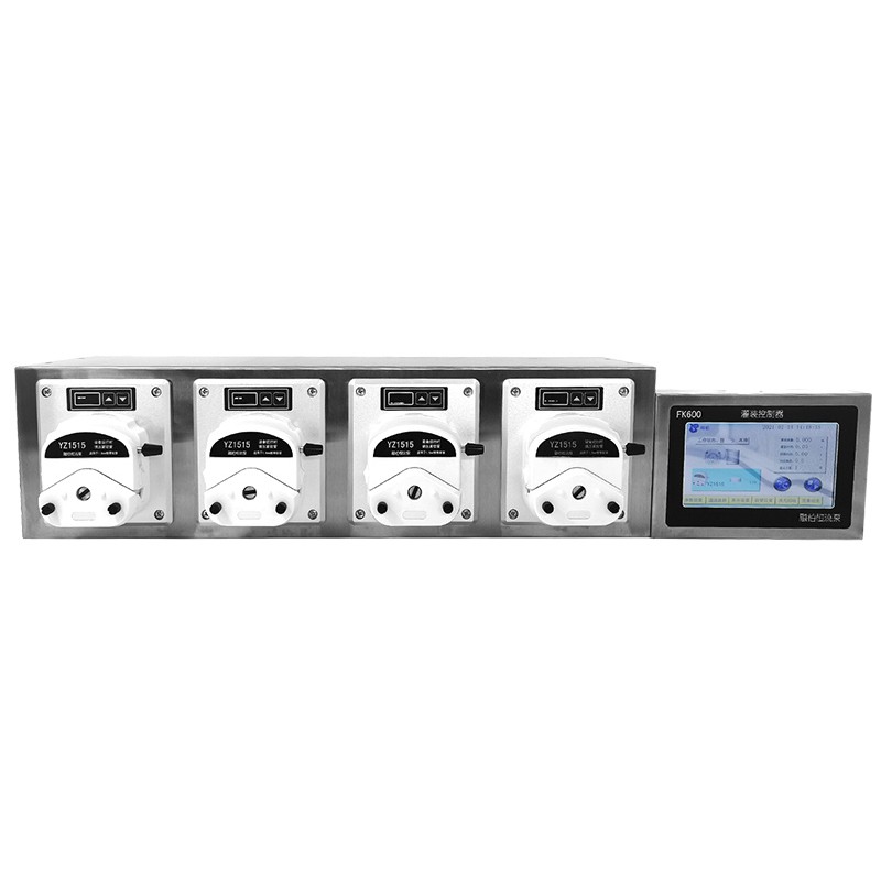 四个灌装单元; 304不锈钢外观; 具备基本型、流量型、分配型功能; 采用工业级彩色触摸液晶屏操控,动画+数据显示灌装状态; 具备分控模式,可实现单个个通道设置不同灌装液量; 可扩展多组灌装单元,任意设置灌装单元有效性; 具有液量校正功能,灌装液量范围广最低可灌装0.1ml; 适用多种泵头灌装:YZ1515,YZ2515,DMD15; 消耗功率<200W(单组)。 基本参数 FK600-T4灌装系统采用7.0寸工业级彩色触摸液晶屏操控,动画+数据显示灌装状态;可扩展多组通道,任意设置通道有效性,并且可以单独配置每个通道的灌装液量,带有液量校正功能,而且还有缺瓶止灌功能,灌装液量范围广最低可灌装0.1ml。 转速范围:0.01-600rpm 全速转速:600rpm 外控方式:开关量信号 灌装液量范围:0.01-9999.99mL 灌装时间范围:0.1-9999.99s 间隔时间范围:0.1-9999.99s 液量分辨率:0.01mL 时间分辨率:0.01s 灌装次数范围:1-9999次,0为无限次 回吸角度:0-360° 温度:0-40℃ 相对湿度:<80% 消耗功率:<200W(单组) 主要特点 可单独设置每个通道的液量 高细分精确角度控制技术,实现高精度灌装 彩色触摸屏操控,界面友好,动画显示灌装状态,且同屏显示灌装参数及系统设置 智能校准功能,在生产前对灌装量进行自动校准,确保灌装精度 可在一台控制器上任意扩展最多32个灌装通道,节约成本 有效单元设置,可在使用中任意开启或关停某个或几个灌装通道 回吸角度设置,可以避免停机时液体滴漏 外控启停功能,两种模式可切换使用 每个通道独立接收缺瓶止灌信号,实现单独通道缺瓶止灌 快速填充或回收,即可清洗管路又可向管路中填充液体 304不锈钢外壳,防腐蚀,不生锈 |