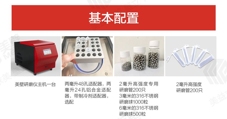 备注 *可以选用配套的美壁研磨仪试剂盒可以快速、高效、稳定、批量的提取样品中DNA/RNA蛋白质等。 *常规的适配器都可以放入冰箱内以便于在工作的时候给样品一个冷环境。可另配带制冷的适配器,可以液氮中浸泡三十分钟以上。 *针对工作环境的噪音排放值,取决于样品的类型和研磨仪的设置。表中参数为空载状态。 *通常用于DNA和RNA分离的少量样品可在一次性离心管中制备。可采用聚四氟乙烯材料制成的适配器,容纳5或10个一次性样品试管,进行细胞破碎。在多样品组织研磨机中细胞组织在较短的时间内得到快速而有效的破碎,因而无需额外的低温制冷。 |