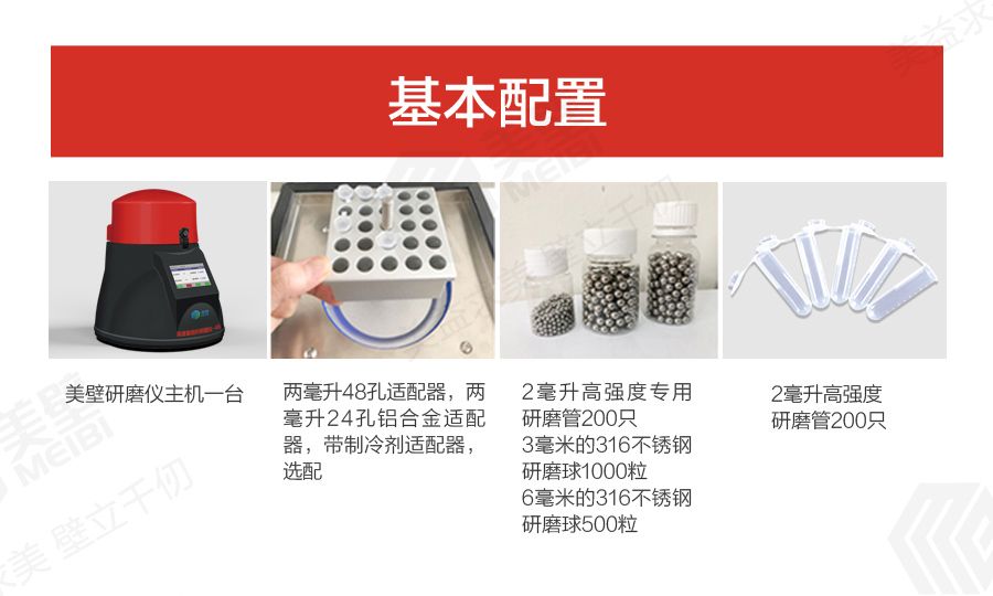 备注 *可以选用配套的美壁研磨仪试剂盒可以快速、高效、稳定、批量的提取样品中DNA/RNA蛋白质等。 *常规的适配器都可以放入冰箱内以便于在工作的时候给样品一个冷环境。可另配带制冷的适配器,可以液氮中浸泡三十分钟以上。 *针对工作环境的噪音排放值,取决于样品的类型和研磨仪的设置。表中参数为空载状态。 *通常用于DNA和RNA分离的少量样品可在一次性离心管中制备。可采用聚四氟乙烯材料制成的适配器,容纳5或10个一次性样品试管,进行细胞破碎。在多样品组织研磨机中细胞组织在较短的时间内得到快速而有效的破碎,因而无需额外的低温制冷。 |