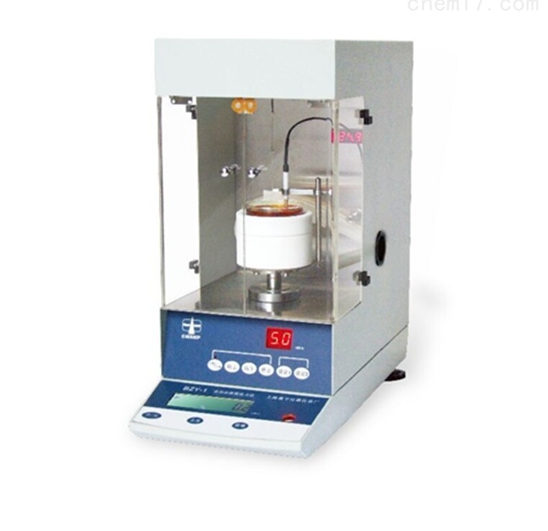 BZY系列全自动表面张力仪是用物理方法代替化学方法测定液体表/界面张力的实验室测定仪器,能快速、准确的测试各种液体-气体表面和液体-液体的界面的张力值。广泛应用于石油、化工、制药、印刷、纺织、电力等行业。采用了电磁力闭环力值测量系统,单片微处理器控制,自动测量,操作简易,性能优异,测试结果高精度,高稳定,高重复性,高线性。 产品特点: 相对于其他表面张力仪而言,BZY系列表面张力仪包括但不仅限于如下优点: 全自动化测量,将人为误差降到z低; 自动读取表面张力平衡值; 一键清零(0-400mN间的任意数值); 一键校正,配合随机附带的标准砝码,准确迅速; 采用白金板法,从而为实现在以下环境下进行测量提供了可能: 因表面活性剂存在而产生的不同时间表面张力值的变化 测量高粘度液体 (自动读取平衡值) 两种不相溶解的液体间的界面张力值,比如油与水. 传感器反应灵敏,精度高,为实现良好的重复再现性进而提供可比较性数据提供可能。 操作简单,无需任何外接电脑控制; 机器自身原因的误差小,更有效地控制测试过程中的各种误差; 可选用样品恒温杯,试样温度检测装置和外接恒温槽。 测试方式:白金板法(或白金环) 操作方式:样品台自动升降,全自动测量 技术参数: