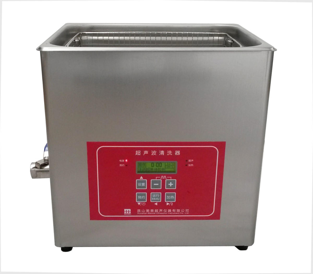 主要技术参数: 1 仪器外尺寸:长320mm宽264mm高320mm 2 清洗槽尺寸:长300mm宽240mm高150mm 3 清洗槽容量:10L 4 超声功率:200W , 功率可调:10-100(%), 5 超声频率:40 KHz 6 加热功率:400W, 温度可调:0-80℃, 7 时间可调:1-480min 8 有不锈钢排水阀,配排水软管 9 有不锈钢网架 10电源:220V/50Hz 主要性能及特点: 全中文液晶显示,智能操作系统提示各项参数的设定 独特的预约功能,最长预约时间24小时 记忆设定的超声清洗时间,有倒计时显示 记忆设定的溶液加热温度,实时显示清洗槽内实际温度 记忆设定的超声功率,超声功率可调 一键运行加热和超声功能 中文显示超温度、超电压、超电流保护保护指示 清洗内槽采用优质304不锈钢板冲压成型 清洗网架采用优质304不锈钢网筛氩焊成型 仪器外壳采用优质304不锈钢