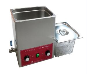 超声波清洗器型号:KQ5200V 主要技术参数: 1.仪器外尺寸:320×264×380(mm) 2.清洗槽尺寸:300×240×200(mm) 3.清洗槽容量:15 L 4.超声功率:200 W 5.超声频率:40 KHz 6.加热功率:400 W 温度可调:常温-80 ℃ 7.时间可调:1-60 min 8.有不锈钢排水阀,配排水软管 9.有不锈钢网架 10.有不锈钢降音盖 11.仪器内外壳均为优质304不锈钢 12.电源:220V/50Hz