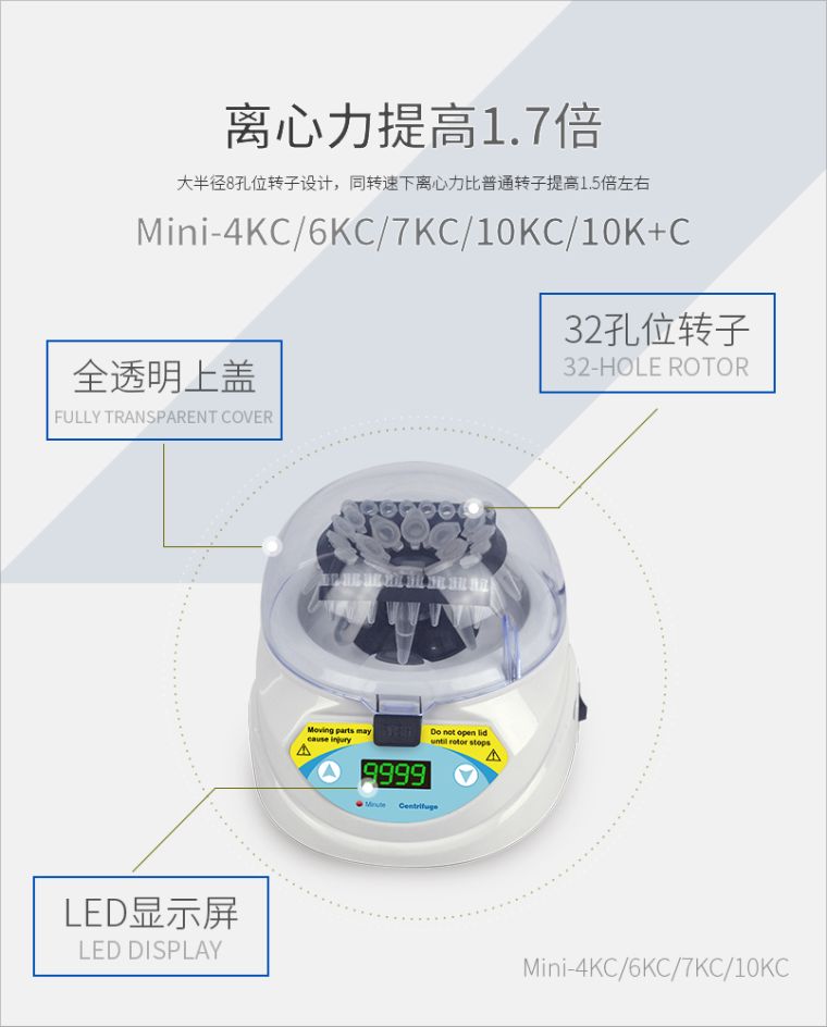 迷你离心机外观新颖独特,灵巧多用。人性化设计,全透明圆型上盖,多转子配备,充分体现以人为本,服务科研的全新理念。