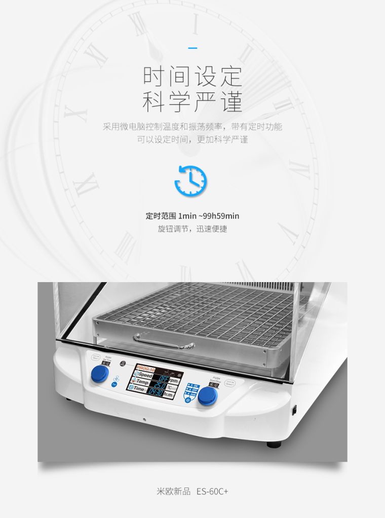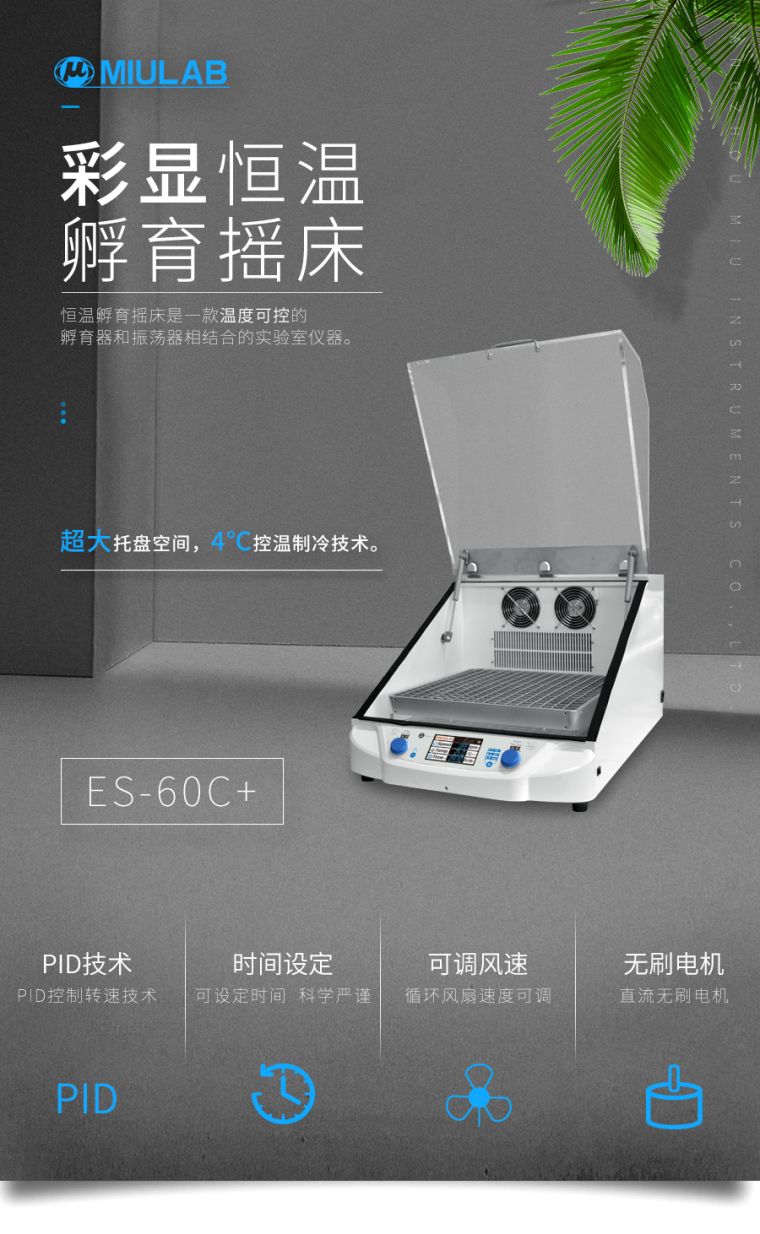 ES-60C+ 恒温孵育摇床是一款温度可控的孵育器和振荡器相结合的实验室仪器,广泛应用于对温度和振荡频率有较高要求的细胞培养、发酵、杂交、生物化学及酶和细胞组织的研究等。可对微生物细胞与各类菌种运动和静态的培养。